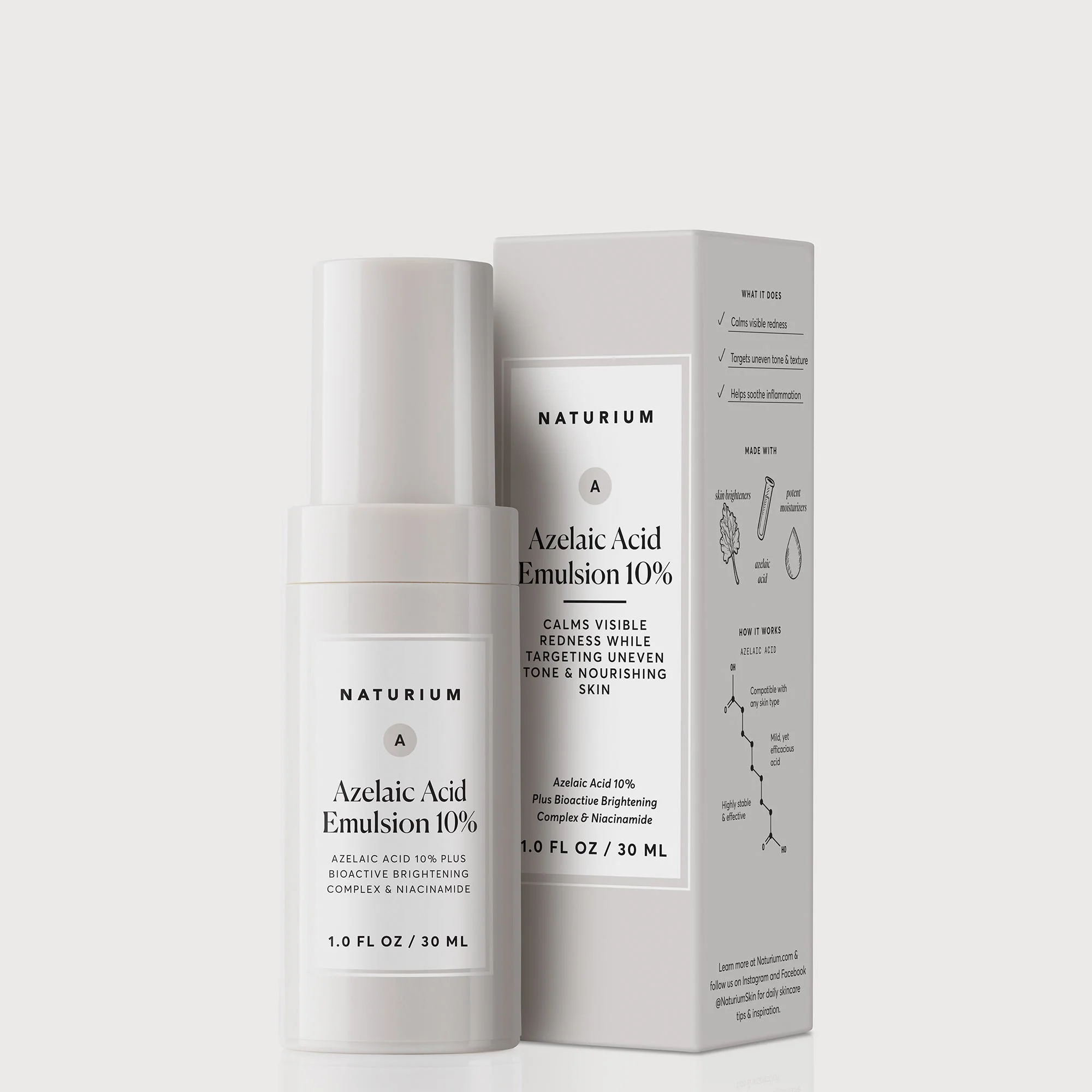 Our creamy, lightweight azelaic acid emulsion is formulated with a potent level of pure azelaic acid, a bioactive brightening complex, bio-retinol and niacinamide to help calm skin while minimizing the look of uneven tone and texture.